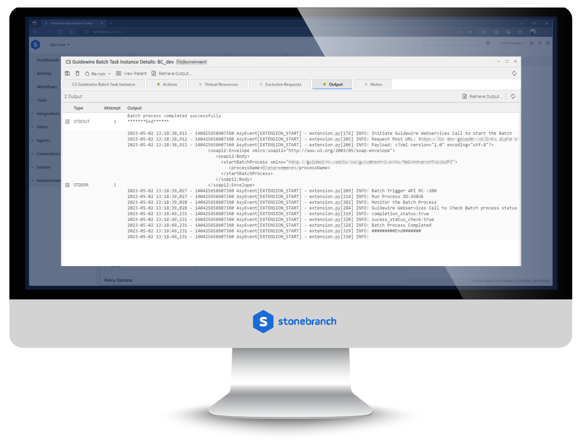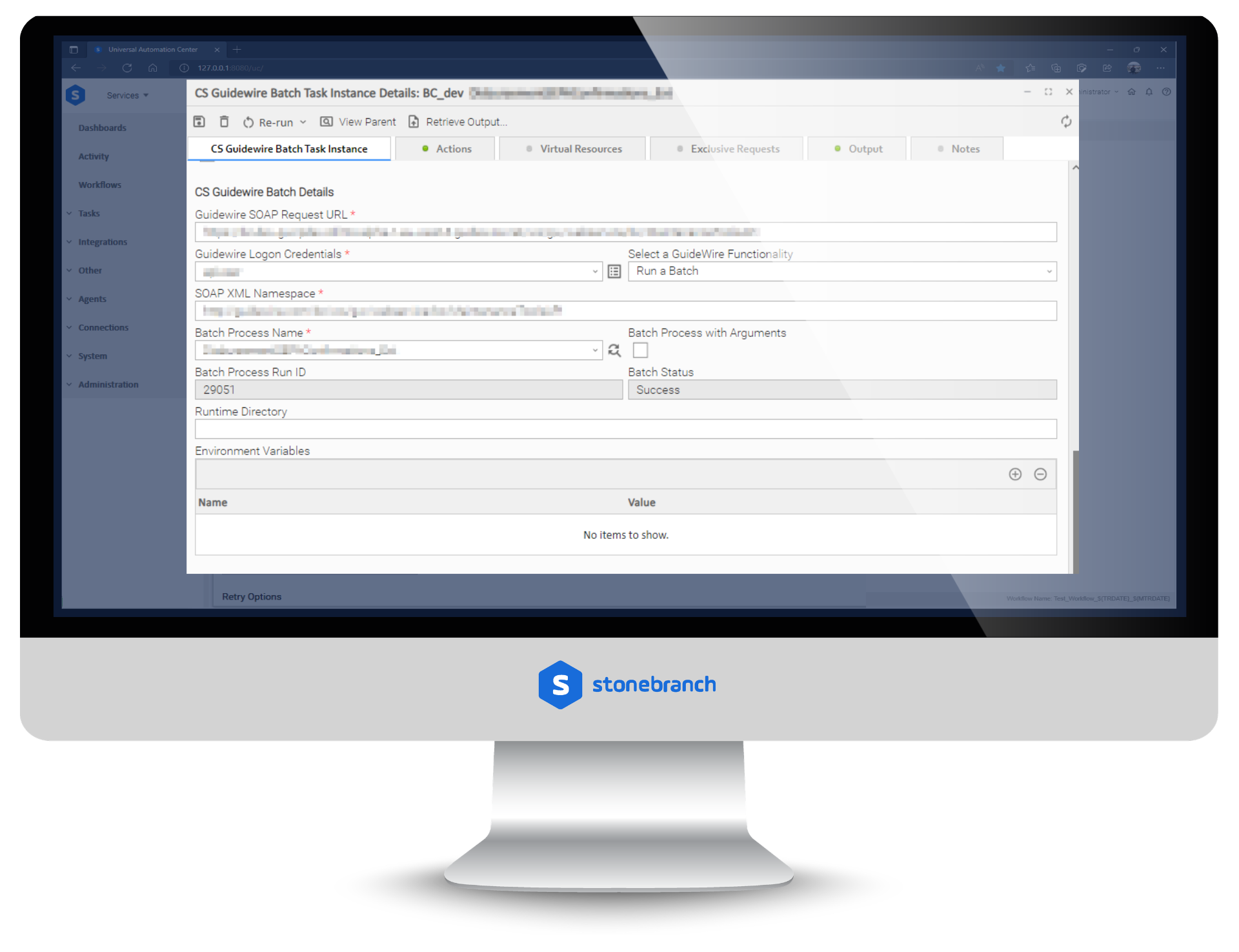 The integration enables execution and management of Guidewire batch processes directly from Stonebranch Universal Automation Center (UAC) via the SOAP protocol.